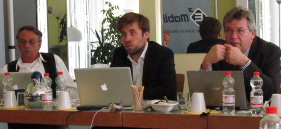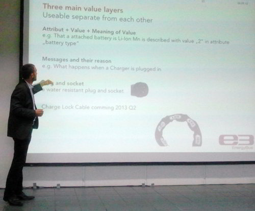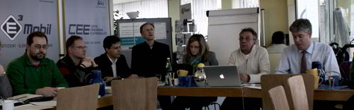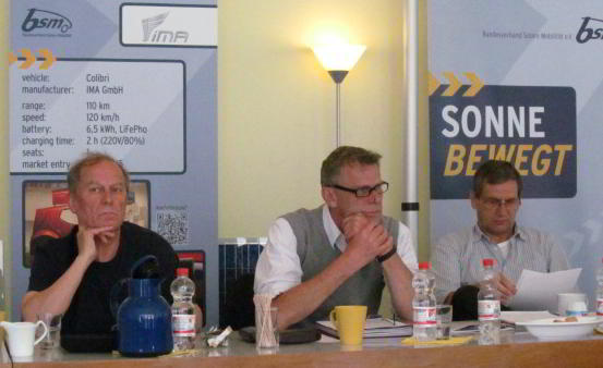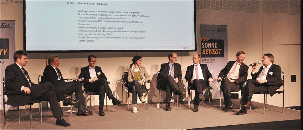 Auf dem Podium:Hechtfischer (Ubitricity), van Grolman (Dialog-Institut), Thier (Naturstrom), Zierul (e.on), Lobenberg (eMo), Müller (Wirtschaftsministerium Thüringen), Gerhardy (BWE) und Ruschmyer (BSM)